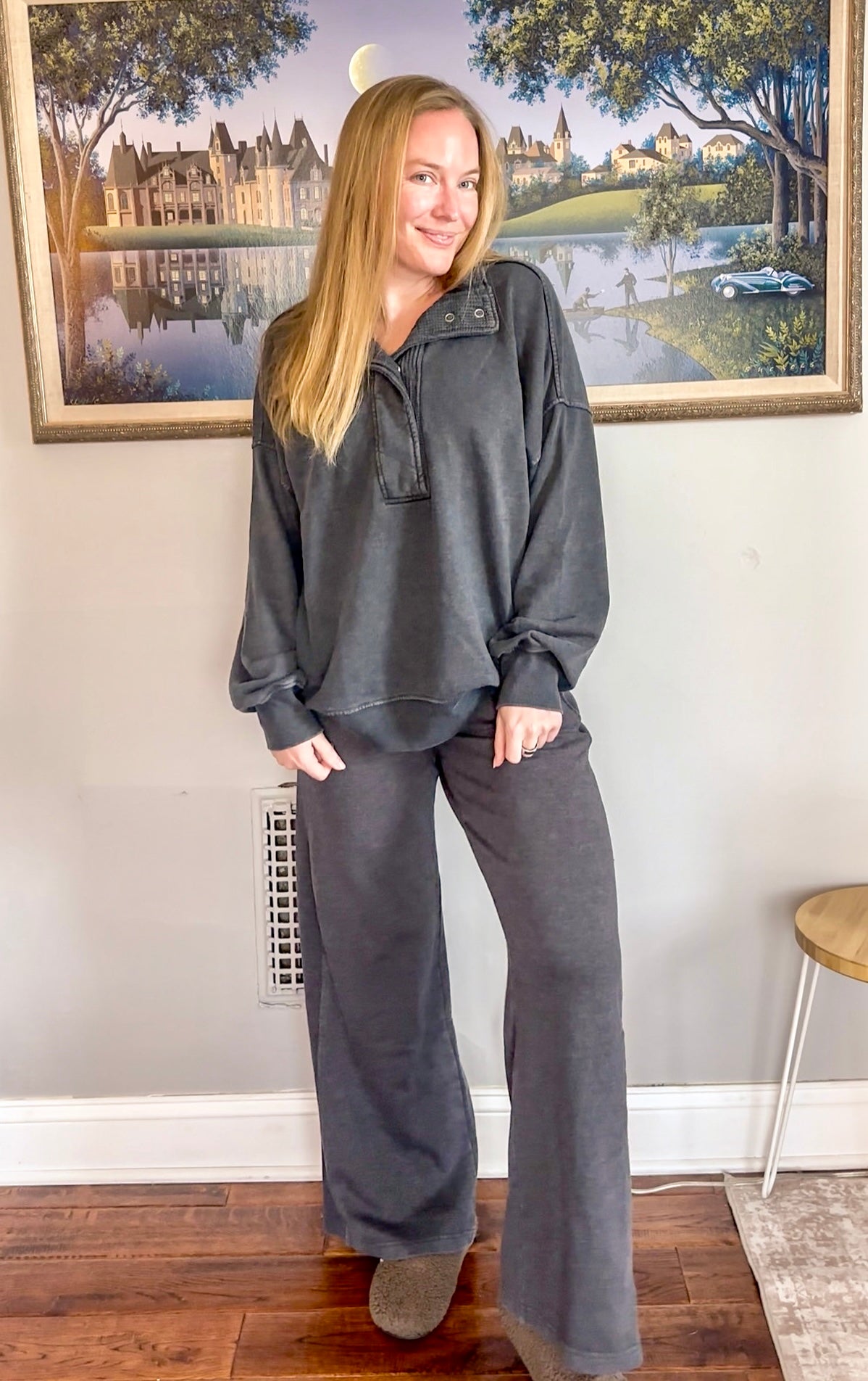 Style this quarter snap French terry pullover with wide leg pants, joggers, leggings, or denim for an effortlessly cool outfit. Ideal for lounging, errands, travel days, and relaxed weekend looks.