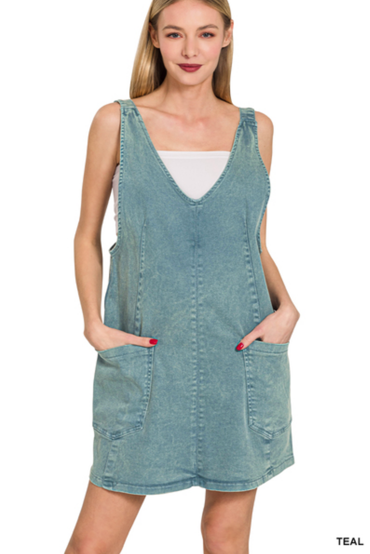 Meet your new favorite one-and-done outfit—the Washed Adjustable Strap Denim Overall Dress. Designed with a flattering deep V-neckline and an easy, relaxed fit, this piece is equal parts casual, chic, and endlessly versatile. Made from a soft, stretchy cotton-spandex blend, it moves with you while keeping that classic denim structure.